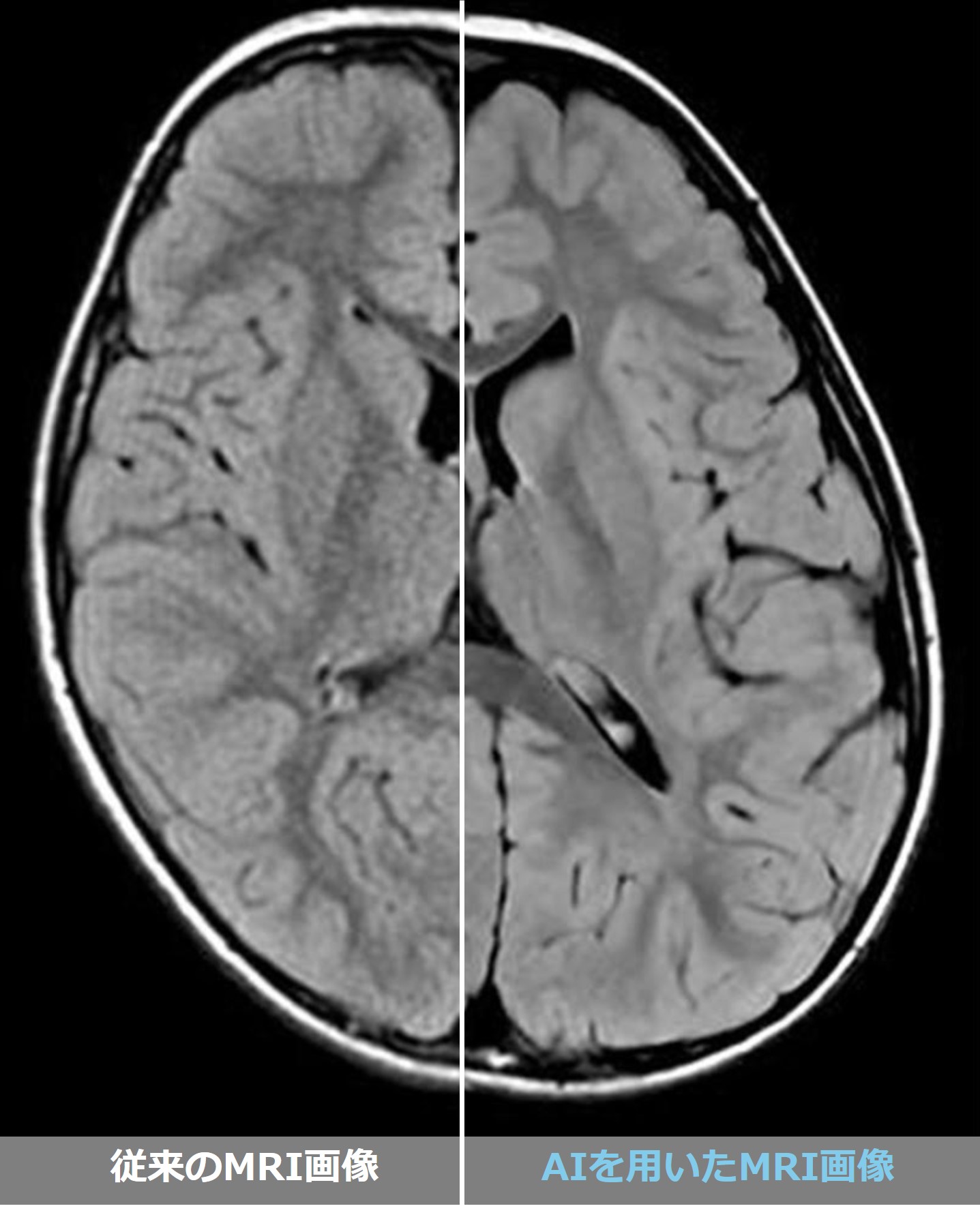 従来のMRI画像と比較して、大幅な画質の向上が