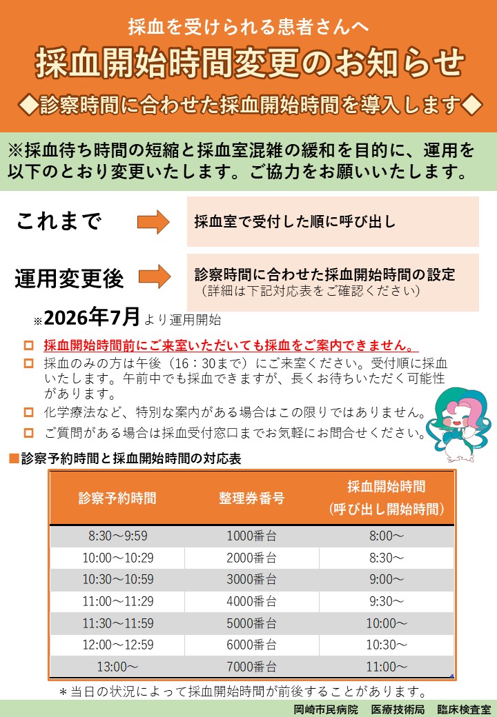 2026年7月より採血開始時間を変更します。